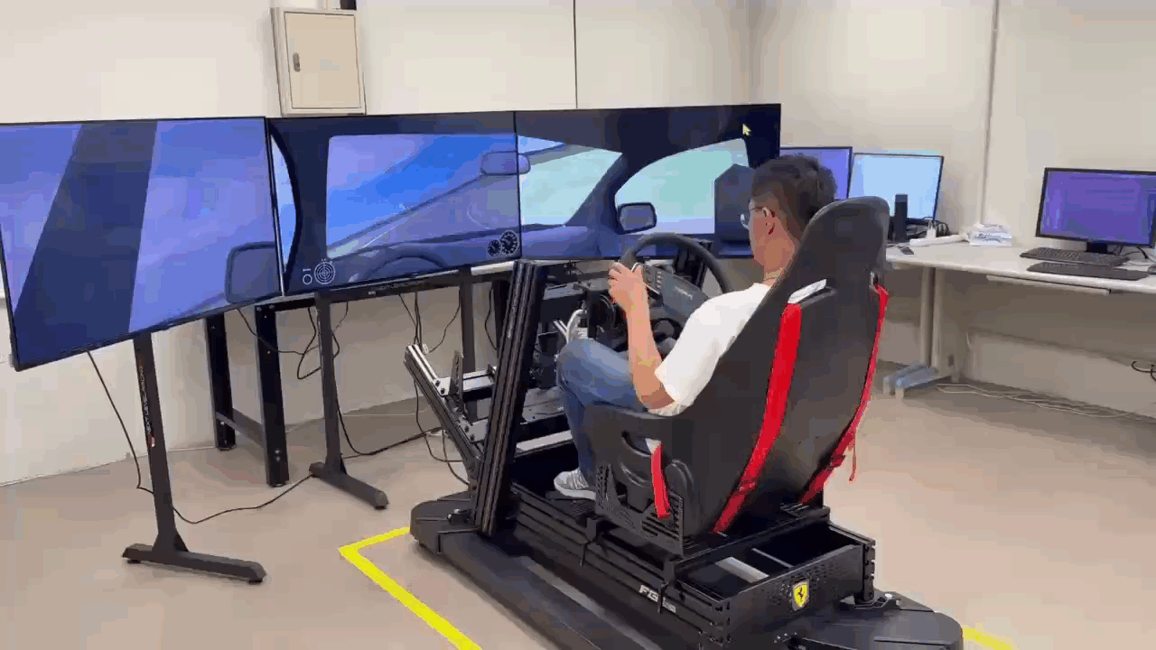 團隊採用由思渤科技獨家代理的 CarSim 車輛動態模擬與虛擬測試平台,結合 NI 機箱 進行高速資料擷取(DAQ)、訊號產生與控制器介接,建構能執行及時模擬的HIL測試環境,用於車輛電子控制單元(ECU)的開發與驗證;並導入美國New Eagle公司開發的車用硬體與軟體環境,加速 ECU 與控制邏輯的原型設計與實車應用。透過這些車用模擬軟硬體整合,團隊打造出具即時互動能力的 駕駛模擬器(Driver-in-the-Loop, DIL),可模擬多種行車情境,分析駕駛人在自動輔助駕駛接管過程中的反應延遲與錯誤行為,為智慧駕駛安全與人因研究提供關鍵支援。