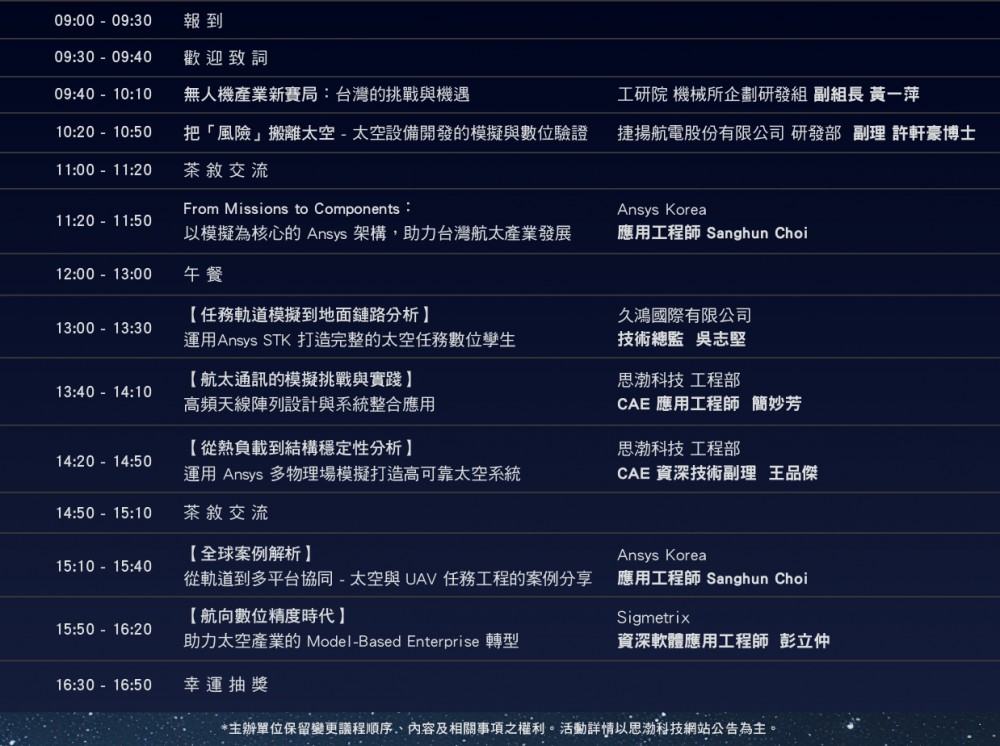 主辦/協辦單位 思渤科技股份有限公司、台灣太空產業發展協會