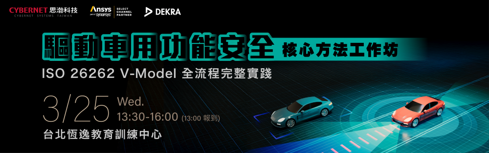 在車輛電子高度整合的趨勢下,IC 設計與系統模組產品若欲順利切入車用市場,關鍵在於是否能依循 ISO 26262 與 V-Model 開發流程,於設計初期即完成可靠度驗證與功能安全布局,降低後段重工與認證風險,幫助建立完整安全與資安管理架構。本次工作坊將結合車用產業合規路線圖與最新法規趨勢,透過 Ansys 軟體實現 ISO26262風險分析並結合PCBA 可靠度數位驗證與設計改善,