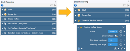 為了提高可讀性,Ansys Speos 2023R2中的塊記錄更加簡潔:在創建和定義Ansys Speos物件時,記錄單個塊,直到該物件的創建定義結束,在編輯Ansys Speos物件並修改其定義時記錄單個塊。